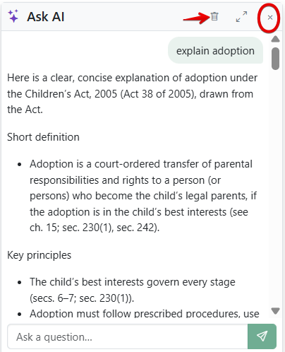 7. Click the **close icon** to collapse the dialog without deleting the conversation. You can pick up right where you left off when you return to that document.