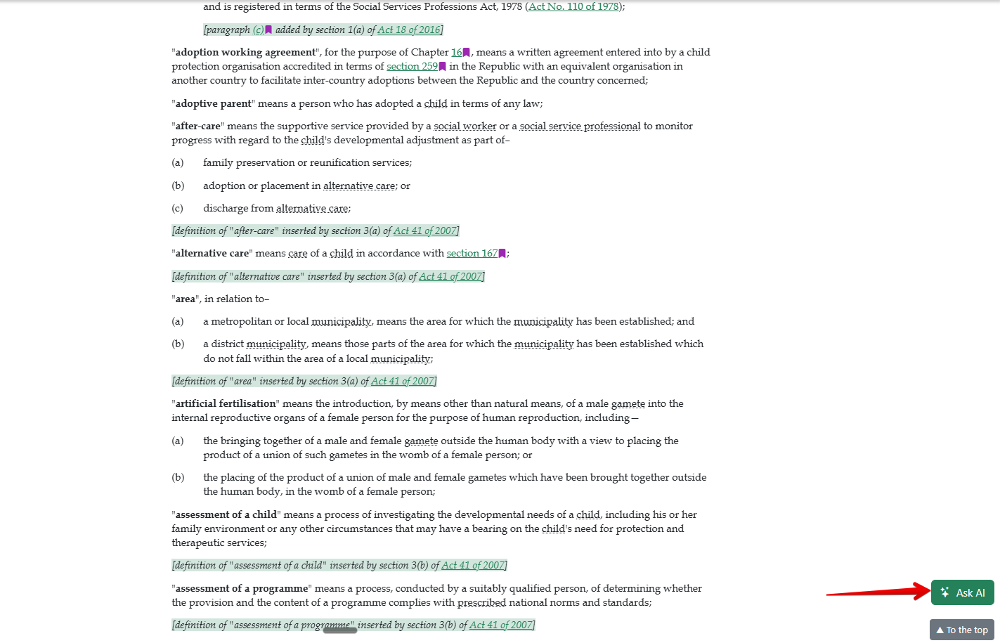 2. Click the **Ask AI** button in the bottom right corner of your page.